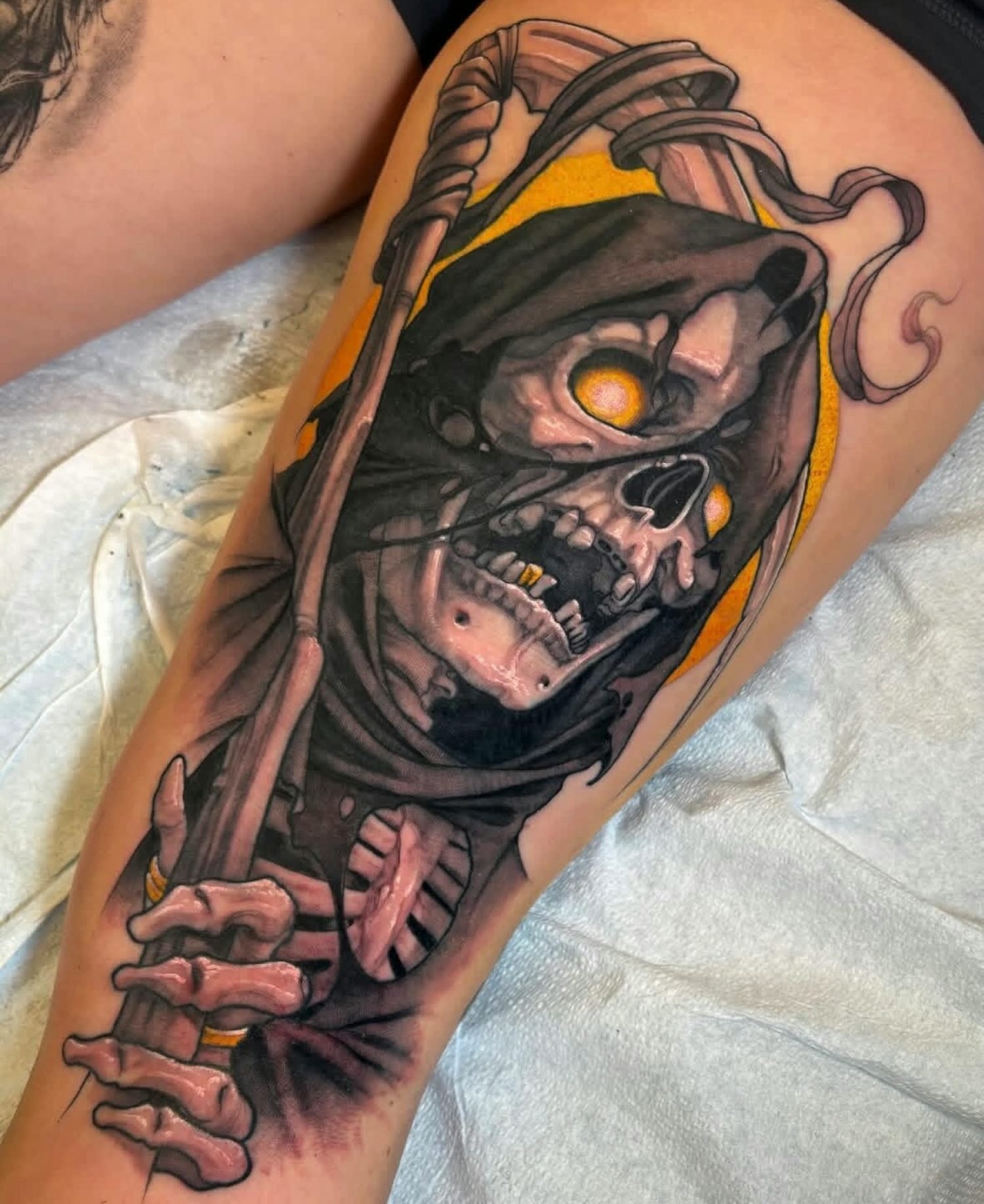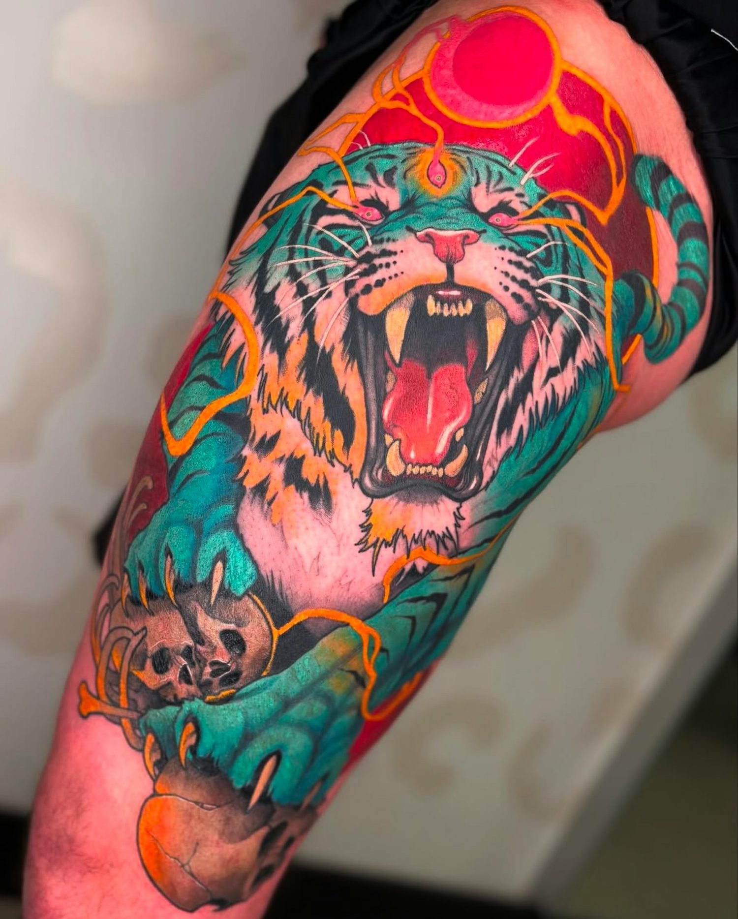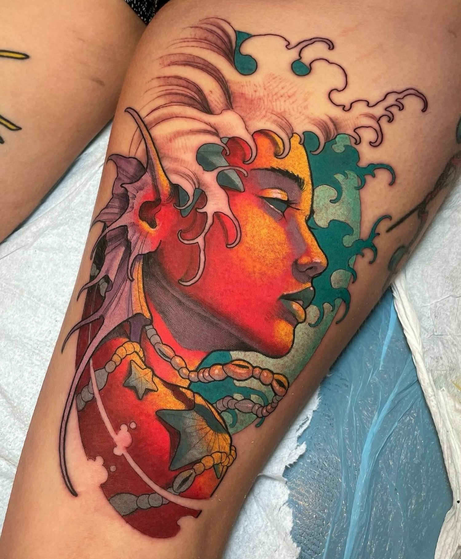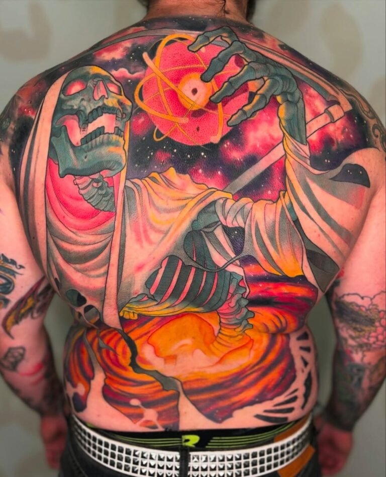 Eric Brunning is a Vancouver-based tattoo artist working out of Super Cat Tattoo in the Hastings-Sunrise neighbourhood and he’s known for his dramatic illustrative style, which he describes as focused on “light sources… playing with colour and light, trying to make things super dramatic”.